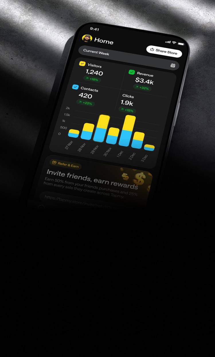 Share one link anywhere and let Tapmy handle sales, engagement, and automation automatically.