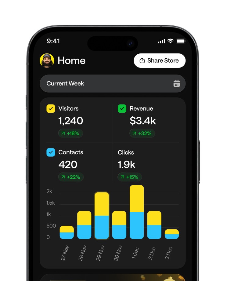 Capture leads, run promotions, collect emails, and convert followers into buyers with built-in marketing tools.