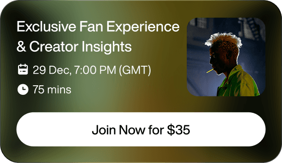 The platform supports virtually any digital or bookable offering: exclusive behind-the-scenes content, limited-edition digital collectibles, personalized video messages (like Cameo but on your terms), VIP meet- and-greet bookings, masterclasses and workshops, merchandise drops, fan community memberships, early access to releases, signed digital art or photos, and premium fan experiences. Each offering is presented in a clean, luxury storefront experience that matches your brand.